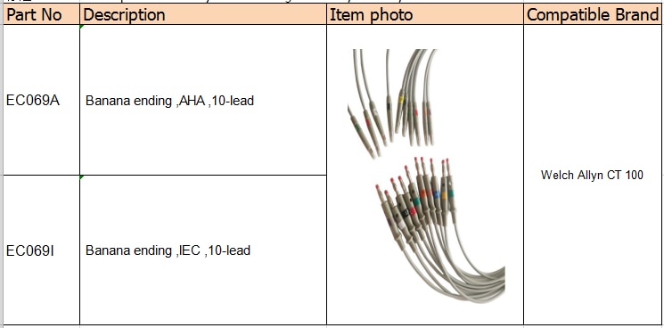 Baj popilè: comaptible welch allyn ct 100 ecg leadwires, 10-plon, konekte ekg kab, Lachin, manifaktirè, Customized, esansyèl, achte rabè, pri ki ba, bon jan kalite segondè