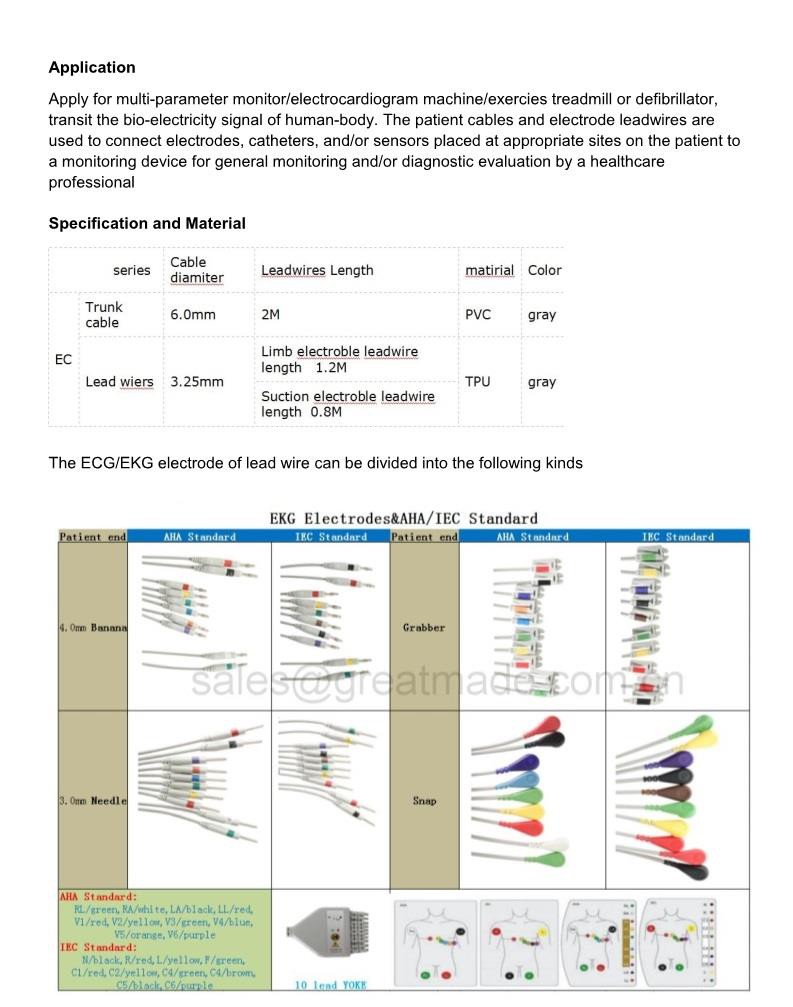 (2). Pasyan pou kontwole ECG kab ak leadwires
