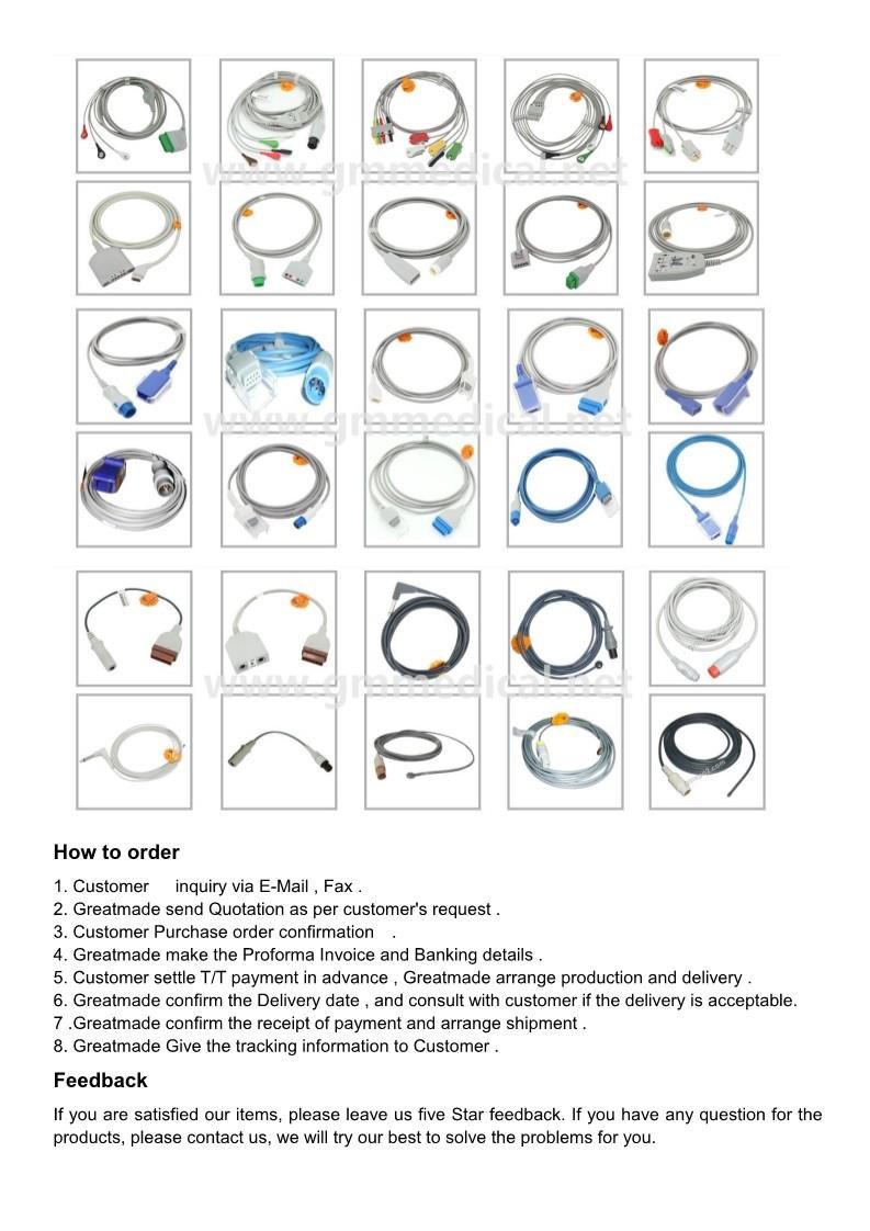 Compatible GE CAM / Universal Leadwire konpatib ak GE 1100 / 1200,1200ST / 5000, 5000ST, 36 pous (90cm)