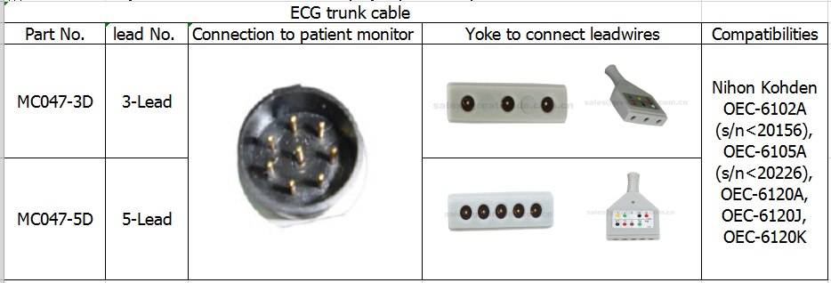 Konpatib Nihon Kohden ECG kab, 8pin, Dinyen jouk, 3-plon-OEC-6102A