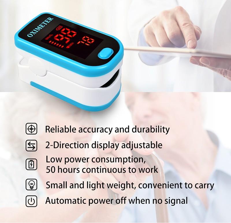 Oksimètr batman an dwèt se yon fason abòdab ak egzat yo tcheke pousantaj batman kè yo ak nivo san saturasyon oksijèn. Li montre tou ke Plethysmograph lan, ki garanti presizyon an. Oto-ajiste kranpon dwèt plis senp konsepsyon yon sèl-bouton pèmèt pou operasyon fasil. Vini ak yon ka pote ak kou / ponyèt kòd. Pratik pou enfimyè ak doktè kwoke sou kou an. Ti gwosè pòtab fè li fasil okipe epi pote. Apwopriye pou itilize chak jou, mezire sante ou a nenpòt ki lè.